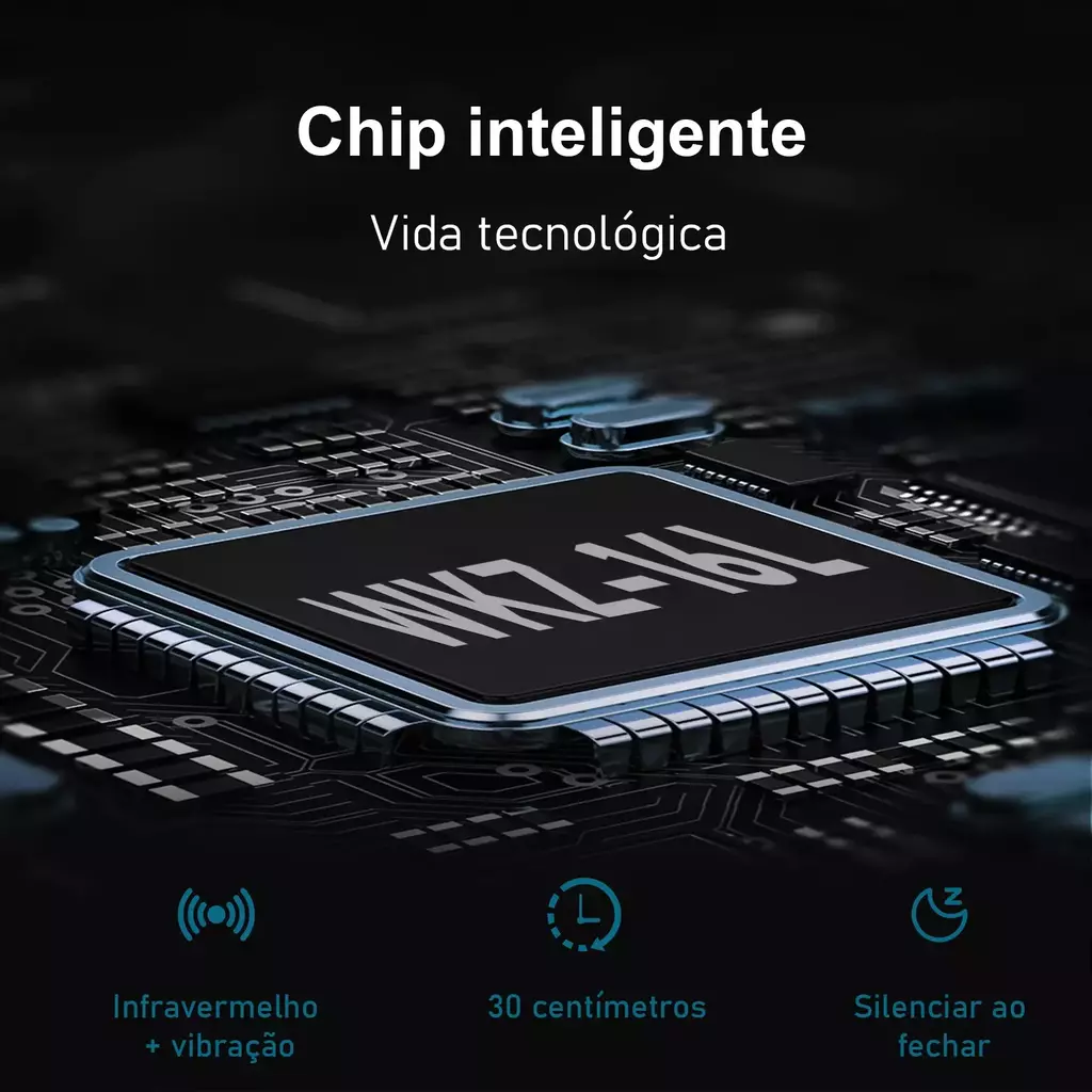 Com funcionamento silencioso graças à tecnologia de amortecimento de ar e um design de baixo consumo energético, a bateria pode durar de 2 a 4 meses com uso regular.